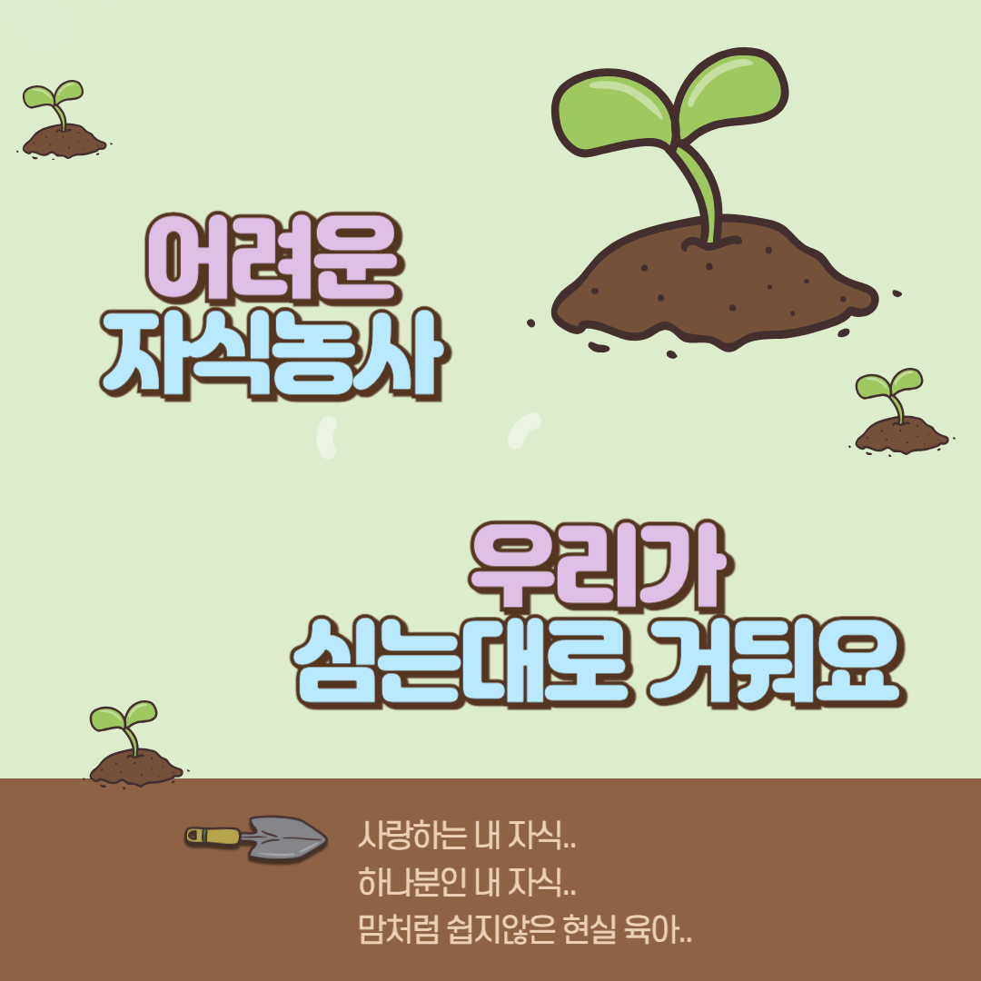 이처럼 자녀 양육은 쉬운 일이 아니지만, 부모의 사랑과 헌신을 통해 자녀가 올바른 길로 나아갈 수 있도록 돕는 것은 매우 가치 있는 일입니다. "심는 대로 거둔다"는 원칙을 기억하며, 자녀에게 최선을 다하는 부모가 되기를 바랍니다.
